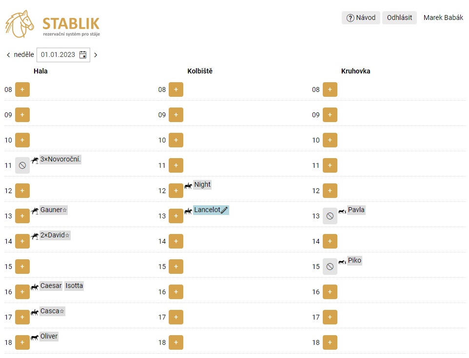 - Rezervace na jednotlivé plochy, které máte ve stáji